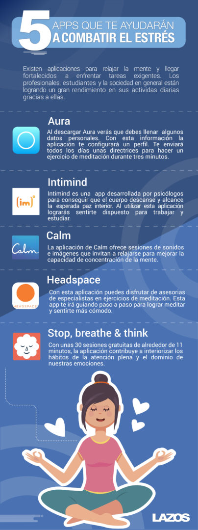 ¿Pero, cómo evitarlo? En la actualidad es posible utilizar apps móviles para mantener este sentimiento bajo control y al mismo tiempo cuidar la salud. A continuación, en la siguiente infografía, Lazos delagente te comparte cinco ejemplos de este tipo de aplicaciones.