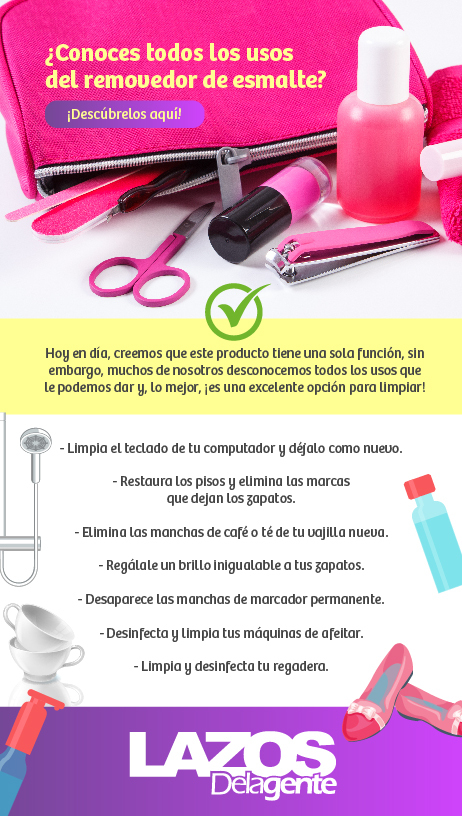 Ya que su principal componente se utiliza para diferentes productos, puede ser empleado para diversos usos y muchas de las personas los desconocen. Por esta razón, hoy en Lazos Delagente te invitamos a conocer qué otros usos le puedes dar al removedor.