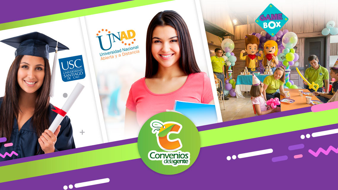 La Universidad Nacional Abierta y a Distancia durante este 2020 ofrece a los afiliados a la caja delagente un descuento del 15 % en todos los programas académicos ofrecidos en carreras tecnológicas, profesionales, especializaciones y maestrías. Aplica sobre tarifas vigentes. Mayores informes: (2) 5141320 o línea de atención nacional 01 8000 115223.