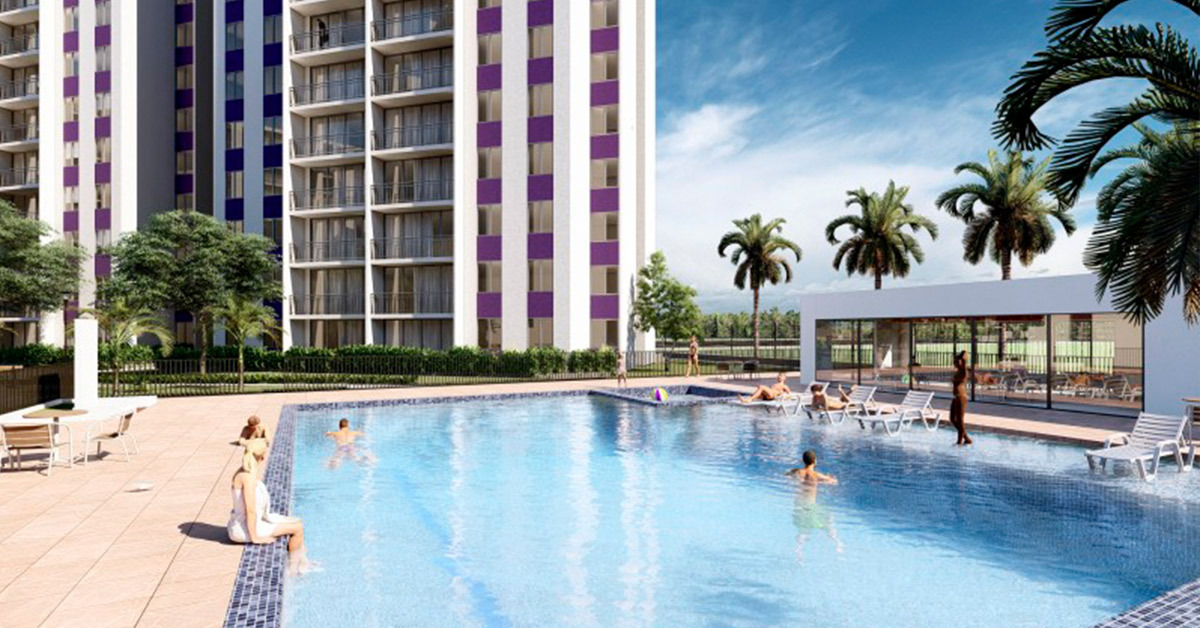 Este proyecto se divide en 288 apartamentos, los cuales se distribuyen en tres (3) torres de 12 pisos cada una. Los apartamentos cuentan con parqueadero propio, dos (2) habitaciones y estudio con opción de tercera alcoba, un (1) baño, zona de oficios, además, el apartamento se entregará con medidores de agua y gas (incluidos en el precio de venta). A su vez, cuenta con espacios especiales, pensando en ti y tu familia: