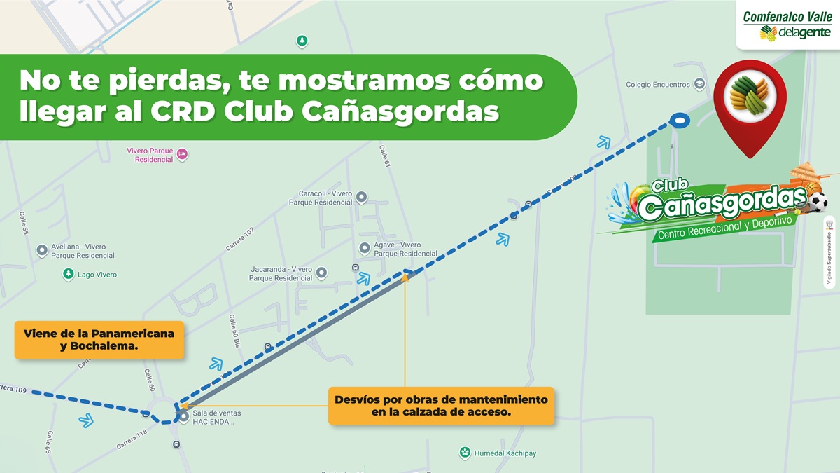 El Centro Recreacional y Deportivo Club Cañasgordas de Comfenalco Valle Delagente en Cali, está ubicado en el sur de la ciudad y, desde julio de 2025 el tramo inicial de su vía de acceso en Kachipay se encuentra cerrado por obras de mantenimiento y alcantarillado de los proyectos de vivienda que se desarrollan en la zona.
